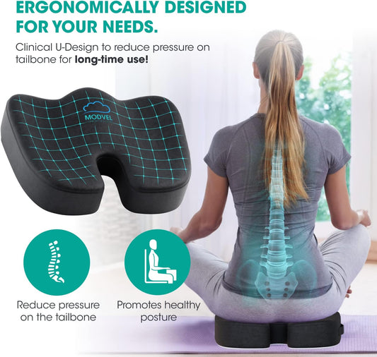 Luppiter Gel Enhanced Seat Cushion, True High Density Memory Foam Pillow for Office Chair - Non-Slip Orthopedic Coccyx Pad - Tailbone, Sciatica, Lower Back Pain Relief - Contoured Posture Corrector.